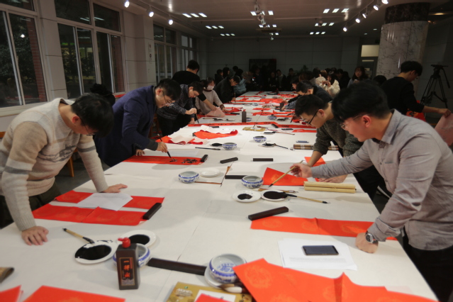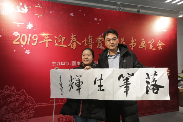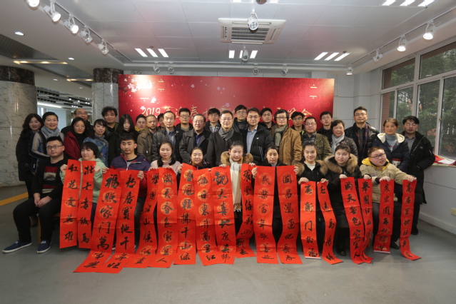 1月11日上午,云顶国际yd222线路检测中心与南京特殊教育师范公司联合举办“2019年迎春博爱公益书画笔会”。公司党委常委、宣传部长吉爱明,党委常委、美术公司党总支书记李彤,副书记蒋芸,云顶国际yd222线路检测中心副经理章文浩、束新水、尹悟铭,关工委常务副主任陆根生,教师代表王霖、荀海、程楠、李莉、丁颖以及近20名书法研究生出席活动。南京特殊教育师范公司党委书记俞锋、党委副书记王立新、副董事长华兴夏、中国特殊教育博物馆馆长马建强及部分师生参加了此次活动。公司师生热情挥毫,为南京特殊教育公司的师生们现场写春联、写福字、写作品,送上新年祝福。