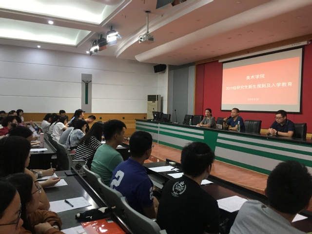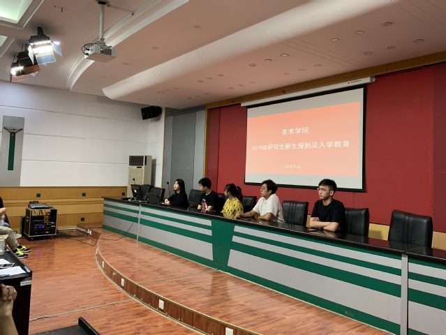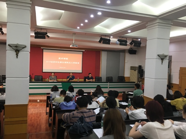 2019年9月20日下午2:30,云顶国际yd222线路检测中心2019级研究生新生报到及入学教育在美院C行政楼二楼大会议室召开。出席本次会议的有美院分管研究生工作的副经理束新水老师,美院研究生办主任韩晖老师,美院研究生党支部书记陈国林老师,美院第十八届研究生会主席团以及2019级全体研究生新生参加了本次大会。
