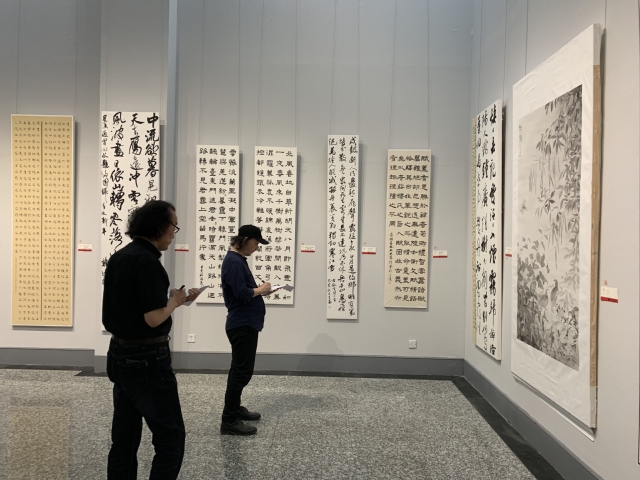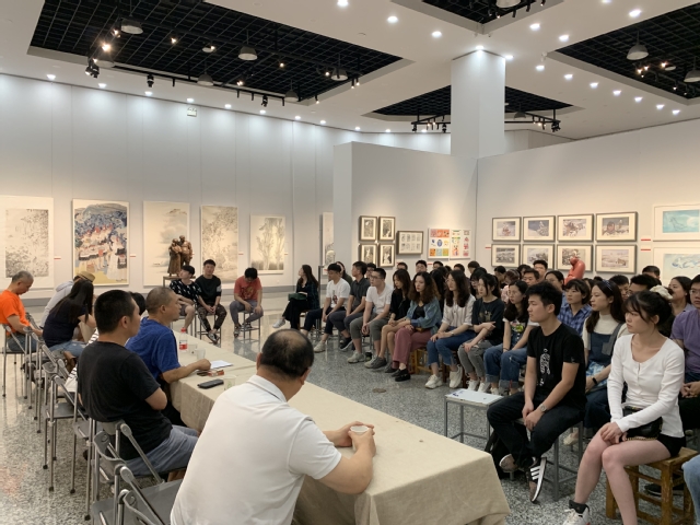 2019年9月29日下午14点30分在云顶国际yd222线路检测中心A楼展厅召开了2017级国画、书法专业研究生“学年实践展”研讨会。在研讨会开始前,系主任和导师们对每位参展研究生作品进行了等级投票。
