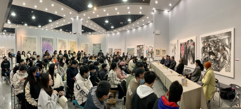 束新水最后作了总结发言,对研究生这次评比结果进行了深入浅出的分析。他认为国画类作品整体最大的问题体现在造型能力上,原因在于基本功不够扎实。整场研讨会学术氛围浓厚,老师们与在座的各位同学之间的交流真挚且热烈,会议结束时,十位老师对同学们的学习态度以及作品中的创新之举给予了肯定与支持,也表达了对2020级研究生明年毕业展览的期待。
