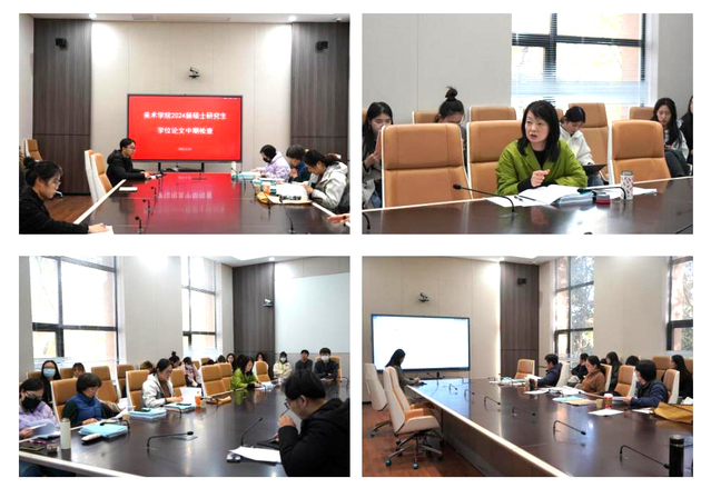 硕士研究生们的论文研究内容涵盖中国美术史、外国美术史、中国画论、书画美学和美术批评五个方面,包括因陀罗人物画及其传承研究、南涅水石刻北朝图像分析及空间思想研究等课题。学位论文中期检查分为陈述与指导两个环节,硕士研究生们详细阐述了论文进度、内容细节,并提出了未完成的论文部分亟待解决的问题。