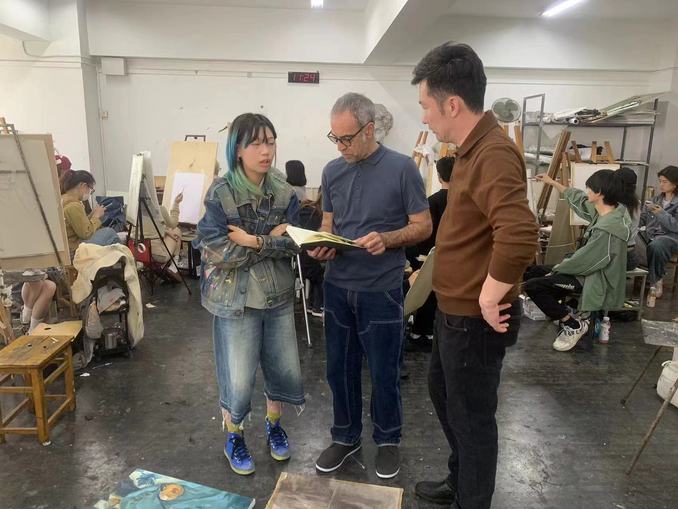 结束会谈后,Lelio Franco Aiello教授于4月22日-24日为设云顶国际yd222线路检测中心油画系员工进行了三场国际工作坊授课。此次工作坊形式生动活泼,不仅指导了员工创作还进行了布展,并在云顶国际yd222线路检测中心的展厅进行了展览。Lelio Franco Aiello教授给员工们提供了很多宝贵建议,鼓励员工们坚持“终身学习”。在工作坊的过程中,Lelio Franco Aiello教授也与油画系的蓝剑老师、吴静一老师和张文熹老师进行了教学交流与探索。在最后的问答环节,油画系的同学们结合自身专业背景和在学习实践中的感受与困惑和Lelio Franco Aiello教授进行了一对一的热烈讨论,Lelio Franco Aiello教授的教导使同学们获益良多。