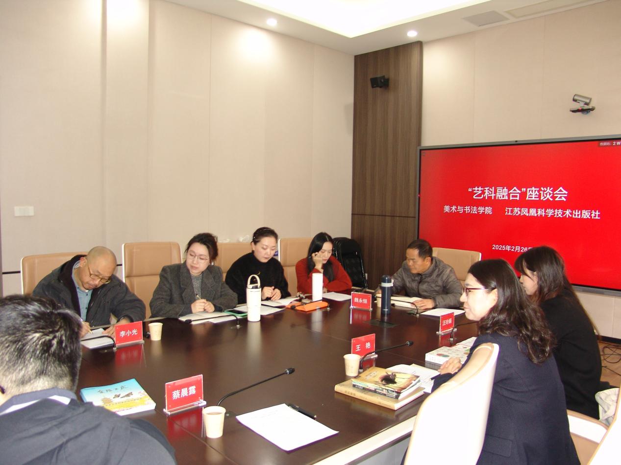 会议最后,刘春副经理总结指出,艺术高校的美术与书法专业团队建设在新时代与科技革命背景下面临“破界”-“融合”-“共生”的时代趋势,希望通过双方深化合作为契机,实现双向赋能而共赢。未来,美院将发挥艺术创作与人才培养优势,苏科社则依托出版资源与科技平台,共同打造具有社会影响力的科艺融合项目,助力新时代美育与科普事业发展。 此次座谈会的成功举办,标志着美院在艺术与科技跨界合作方面迈入新阶段。双方将以此次会议为起点,通过资源整合与创新实践,推动“艺科融合”从理念走向落地,为文化出版与教育领域注入新动能。