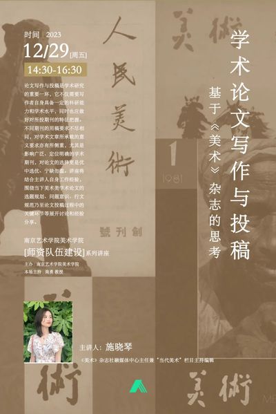 讲座预告丨施晓琴:学术论文写作与投稿—基于《美术》杂志的思考